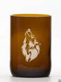 2ks Eko sklenice (z lahve od piva) malá hnědá (7 cm, 6,5 cm) motiv Vlk