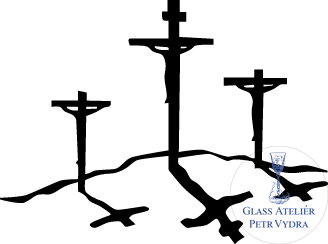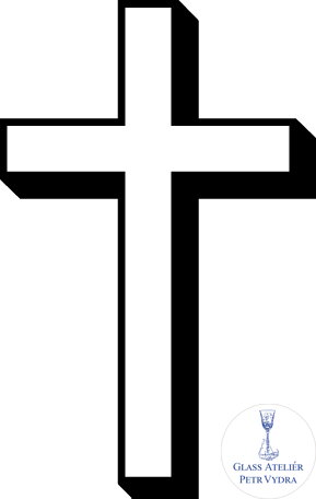 V2. Černá náhrobní skleněná deska s nápisem a křížem