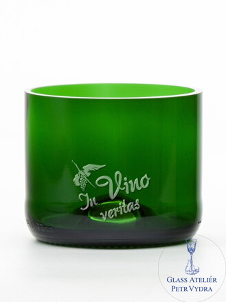 2ks Eko sklenice (z lahve od šampusu) malá zelená (7 cm, 7,5 cm) Moldavský čáp - In vino veritas
