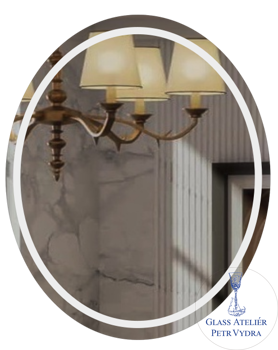 Dekorativní pískované zrcadlo s osvětlením, broušenou hranou a motivem - ( vzor okrajový pruh - ovál )