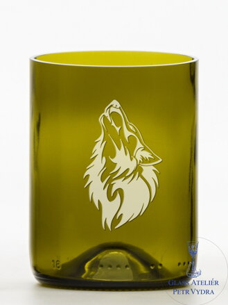 2ks Eko poháre (z fľaše od vína) stredná číra (13 cm, š 7,5 cm) motív Vlk